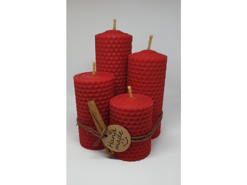 Adventná sada 4ks sviečok, ručne točená z medzistienok z prírodného včelieho vosku. Sada je zložená zo sviečok o výške 120mm, 100mm, 80mm a 60mm, všetky so šírkou 45mm. Vo sviečkach je použitý bavlnený knôt, ktorý je zafixovaný plieškom na knôty aby sviečky dobre dohoreli dokonca.