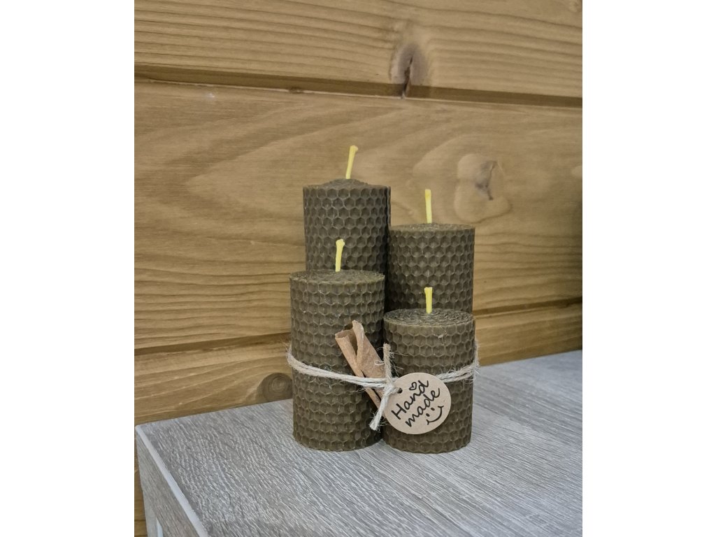 Adventná sada 4ks sviečok, ručne točená z medzistienok z prírodného včelieho vosku. Sada je zložená zo sviečok o výške 120mm, 100mm, 80mm a 60mm, všetky so šírkou 45mm. Vo sviečkach je použitý bavlnený knôt, ktorý je zafixovaný plieškom na knôty aby sviečky dobre dohoreli dokonca.