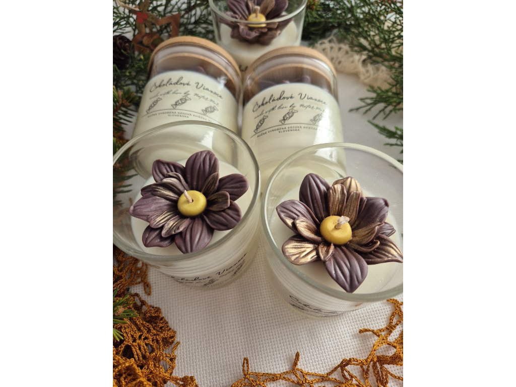 Dizajnová, sójová sviečka, s autentickou vôňou čokoládovo pomarančovej želé kolekcie.