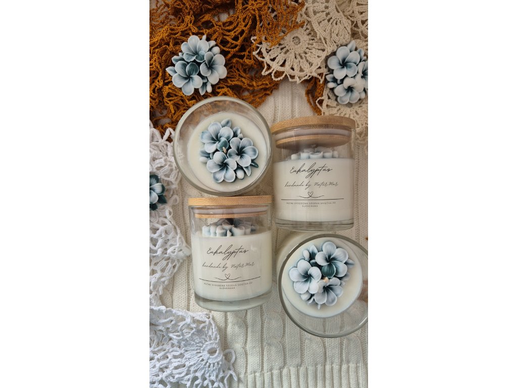 Dizajnová, sójová sviečka s vôňou sviežeho eukalyptu.