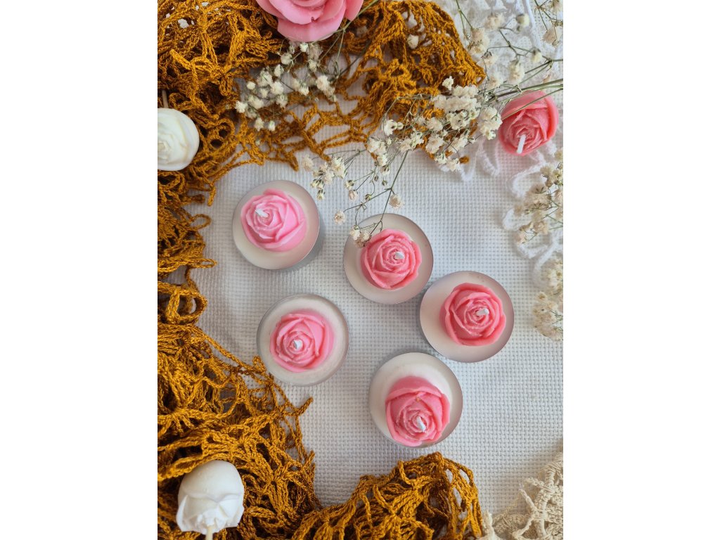 ⇒ dizajnová, ručne odlievaná, čajová sviečka s mini ružičkou